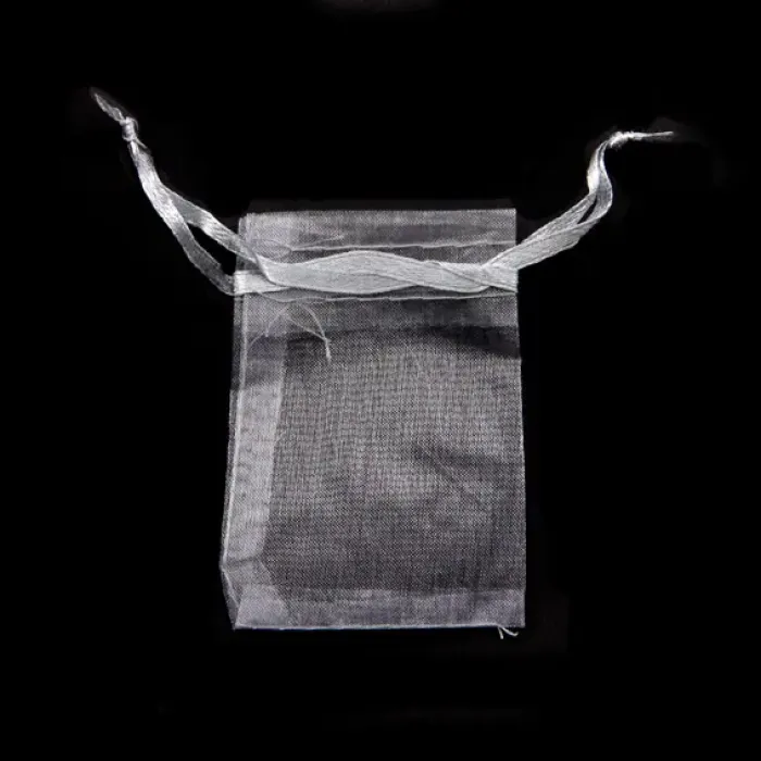 Маленький мешочек из органзы для упаковки бижутерии. Полупрозрачный, серого цвета.