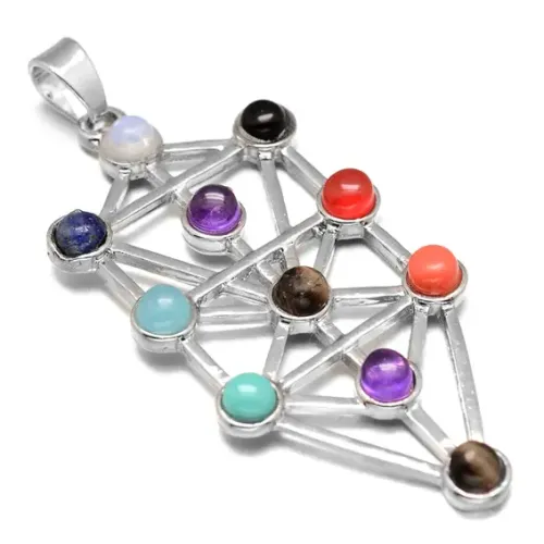Кулон-амулет Дерево Сефирот 7 чакр с натуральными камнями 5,4см, без шнурка CHA501-05