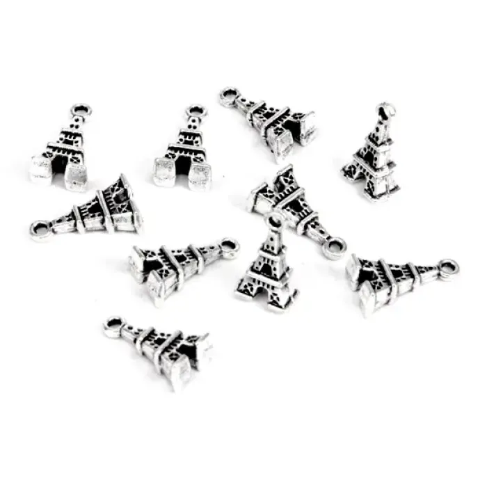 Подвеска для бижутерии в форме Эйфелевой башни. Материал — бижутерный сплав с серебристым покрытием.
