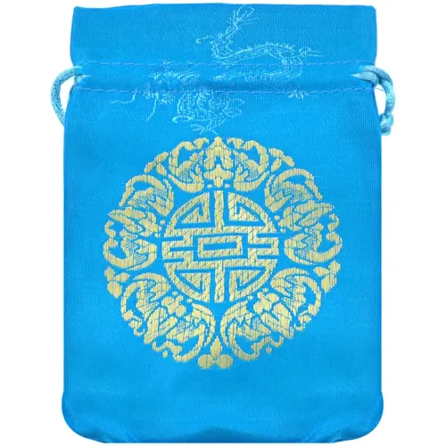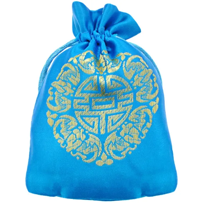 Мешочек из парчи для хранения мелких предметов. Цвет голубой, затягивается на шнурок.