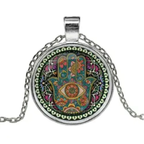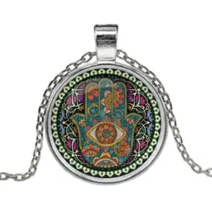 Кулон с цепочкой Рука Фатимы — это изысканный амулет, который символизирует защиту и благополучие. Изготовленный из серебристого металла на основе алюминия, он привлекает внимание своей элегантностью и утончённостью. Выпуклая стеклянная линза придаёт изделию особый шарм и глубину.