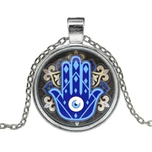Кулон с цепочкой Рука Фатимы — это стильный амулет, выполненный из серебристого металла на основе алюминия. Этот кулон символизирует защиту и удачу, что делает его отличным подарком для близких или личным оберегом. Выпуклая стеклянная линза придаёт изделию особую привлекательность и глубину. В комплекте идёт аккуратная цепочка с замком, что обеспечивает удобство в ношении. Упакован в прозрачный полипропиленовый пакетик, который защищает кулон от повреждений. Традиционно считается, что рука Фатимы приносит счастье и защищает от злых сил.