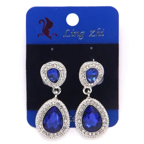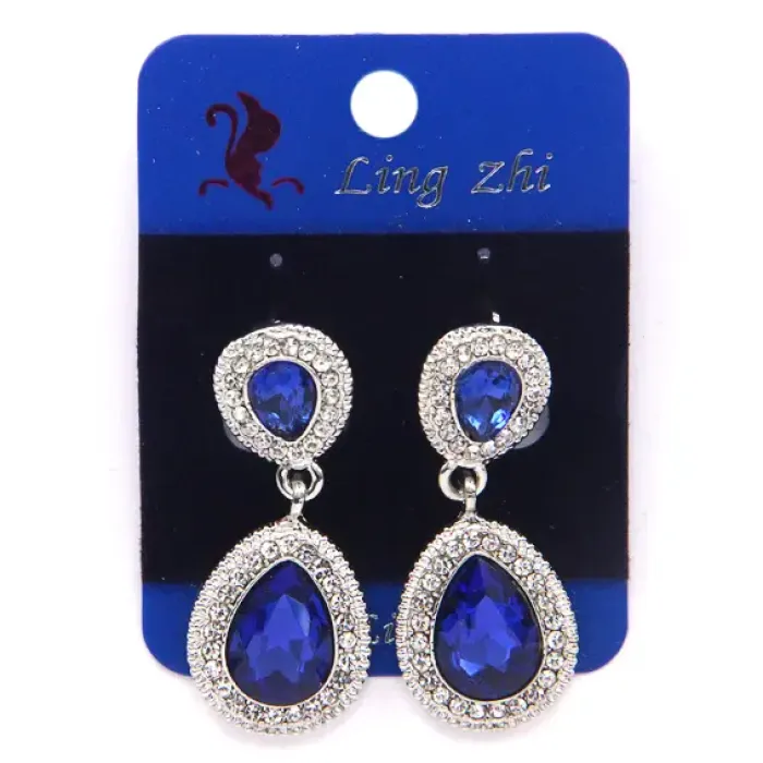 Серьги Капли 4,2см, металл, стразы, серебр. - син. SE016S-B