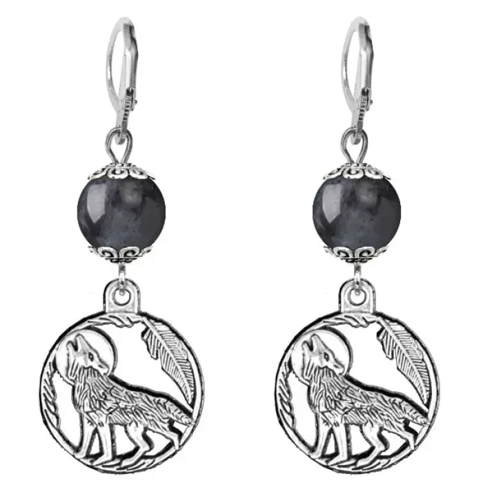 Серьги-амулеты Волк (защита, сила, победа), лабрадор SE-MKA24-07