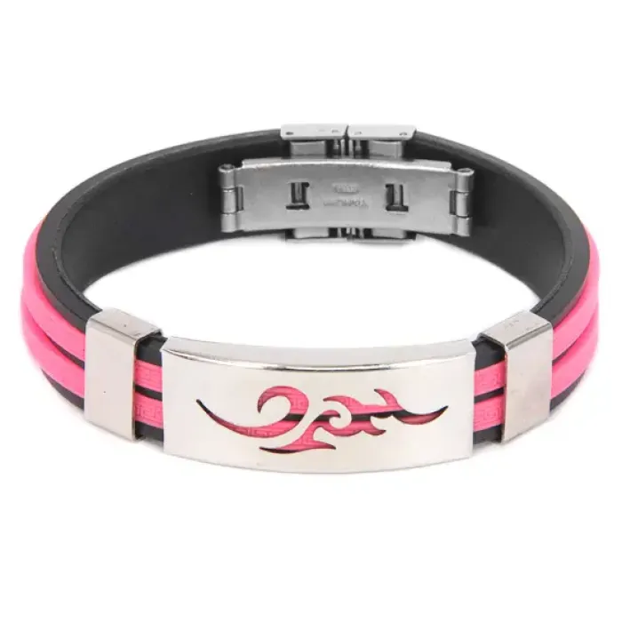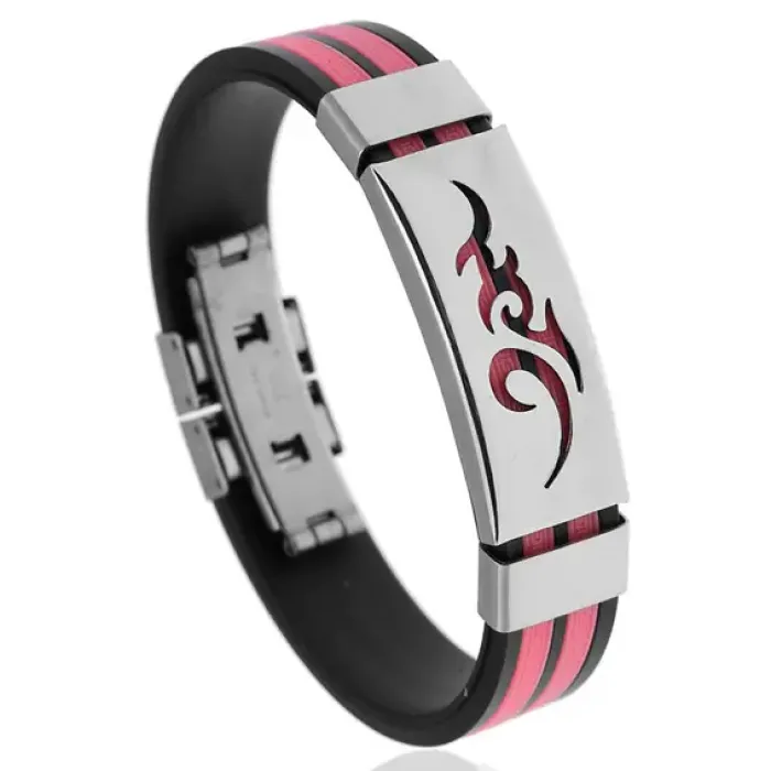 Силиконовый браслет с пряжкой, цвет черно-розовый BS123-4