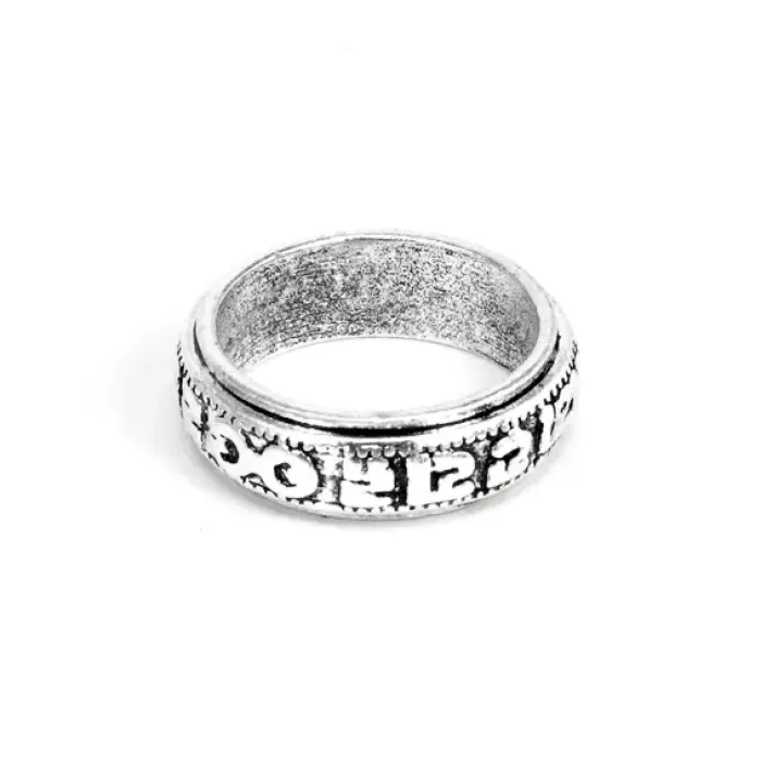 Кольцо с мантрами — это не просто украшение, а символ духовности и внутренней гармонии. Изготовленное из металлического сплава, кольцо имеет элегантный серебристый оттенок и удобно сидит на пальце благодаря размеру 9 (19 мм). Каждое кольцо упаковано в индивидуальный пакетик без подвеса, что делает его идеальным для подарка или личного использования.
