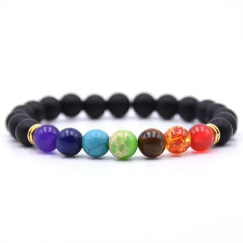 Стрейч-браслет из синтетического шунгита в дизайне «Семь Чакр».