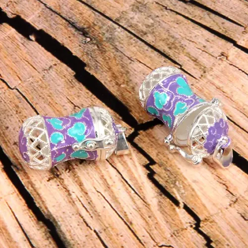 Открывающийся кулон-шкатулка с эмалью — это изысканный аксессуар, который сочетает в себе красоту и функциональность. Компактные размеры 27,5 x 18 x 14 мм делают его удобным для ношения. Этот кулон идеально подходит для хранения молитв, заговоров или руноскриптов, а также может использоваться для твёрдых духов или мягких прокладок с эфирными маслами.