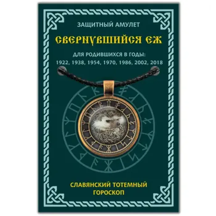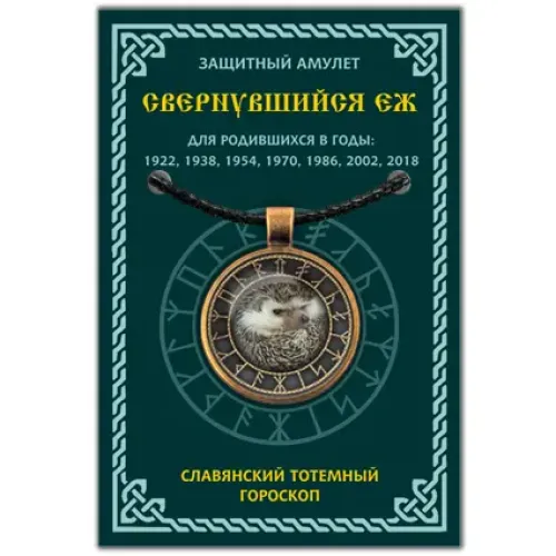 Амулет Славянский Тотемный Годослов - Свернувшийся Ёж представляет собой уникальный предмет, который связан с древнеславянской культурой и гороскопом животных. Этот амулет символизирует людей, родившихся в годы 1938, 1954, 1970, 1986 и 2002. Согласно традициям славянского годослова, год начинался в день весеннего равноденствия — 21 марта. Свернувшиеся Ёжи описываются как непредсказуемые и суетливые личности с отличной памятью и вниманием к деталям. Они ценятся за свою надежность в дружбе и верность в отношениях.