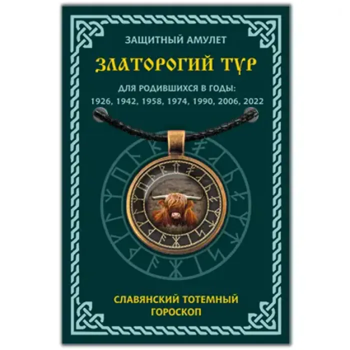 Амулет Славянский Тотемный Годослов - Златорогий Тур представляет собой уникальный символ, который погружает в мир древнеславянской культуры и традиций. Этот амулет не только украшение, но и носитель глубокого смысла, связанного с тотемным годословом, состоящим из 16 лет. Согласно славянскому календарю, год начинался в день весеннего равноденствия – 21 марта. Люди, родившиеся в год Златорогого Тура (1942, 1958, 1974, 1990, 2006), обладают удивительным сочетанием добродушия и смелости. Они известны своей выносливостью и терпением, а также способностью защищать слабых. Амулет изготовлен из сплава на основе алюминия с прочным бронзовым покрытием и выпуклой стеклянной линзой с изображением внутри. В комплект входит шнурок с застёжкой и вкладыш с описанием. Упаковка выполнена в прозрачном пакете с европодвесом.