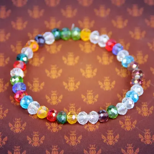 Браслет из стеклянных бусин BS144-6 — это стильный аксессуар, который привносит яркие акценты в любой образ. Изготовленный из радужных гранённых бусин, он не только радует глаз своей игрой света, но и является символом гармонии и красоты. Основные особенности: