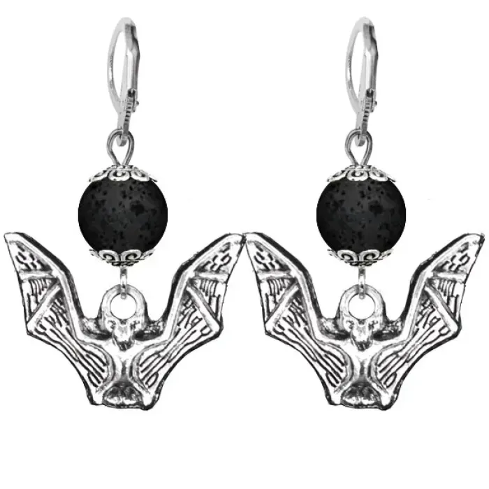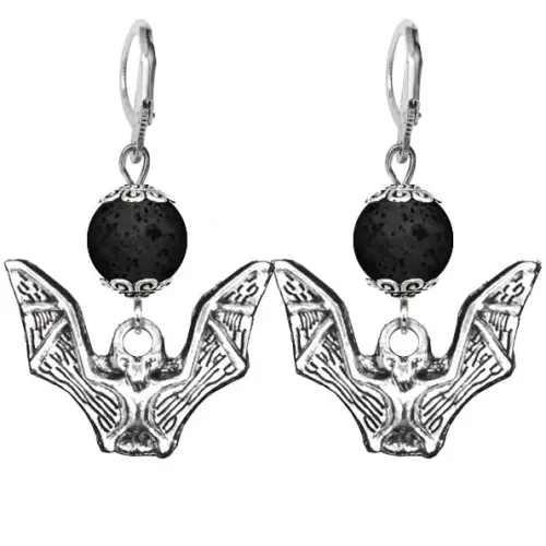Серьги-амулеты из коллекции Магия камня 2. Материал: лава. Дизайн в виде летучей мыши.