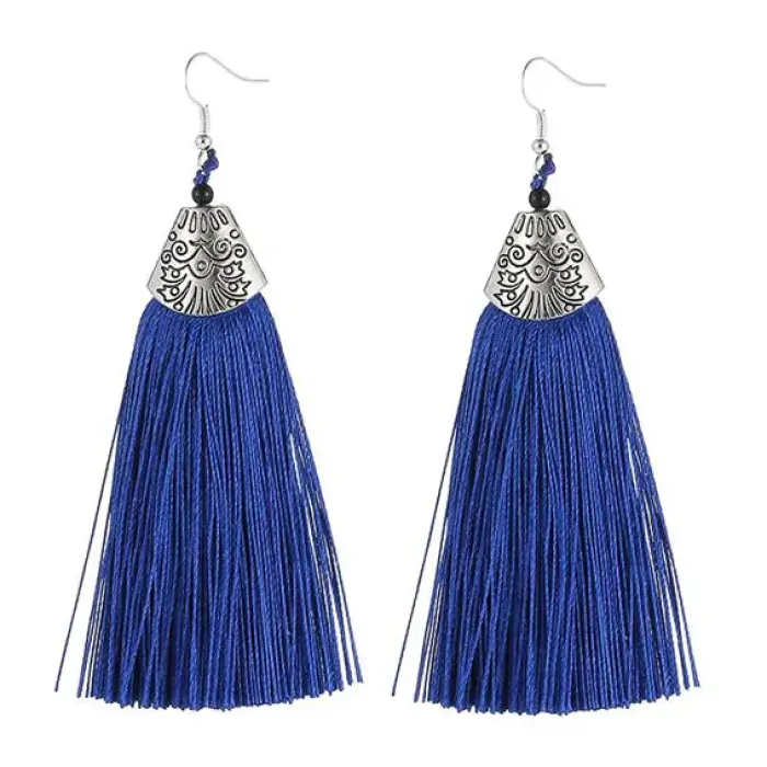 Элегантные серьги-кисточки в насыщенном синем цвете — это не просто аксессуар, а настоящая находка для любителей стильных решений. Изготовленные из бижутерного сплава с покрытием под серебро и акрила, они добавят яркий акцент в любой образ.