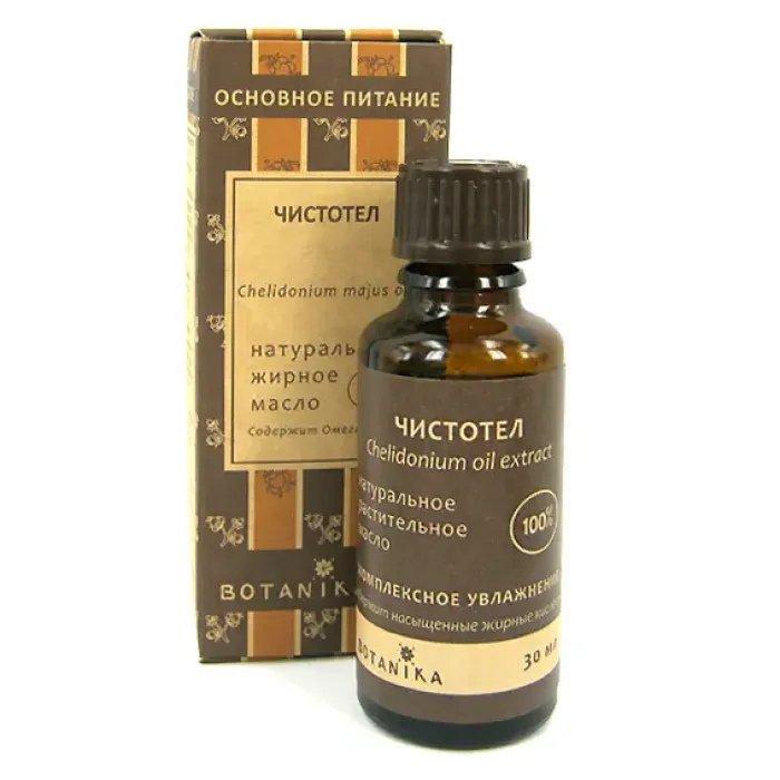 Косметическое жирное масло Ботаника с экстрактом чистотела — это натуральный продукт, который помогает заботиться о коже и волосах, придавая им здоровье и ухоженный вид. Масло изготавливается из надземной части растения чистотел, известного своими полезными свойствами.