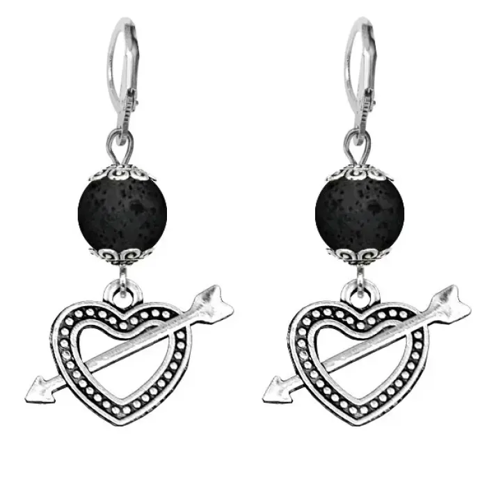 Серьги-амулеты Сердце со стрелой (любовь), лава SE-MKA25-22