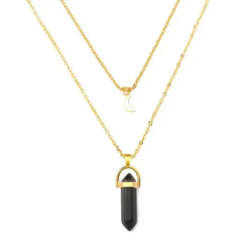 Кулон-маятник с натуральным камнем чёрный агат на цепочке золотого цвета.