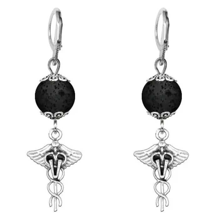 Серьги-амулеты Кадуцей (здоровье, бизнес, гармония), лава SE-MKA25-33