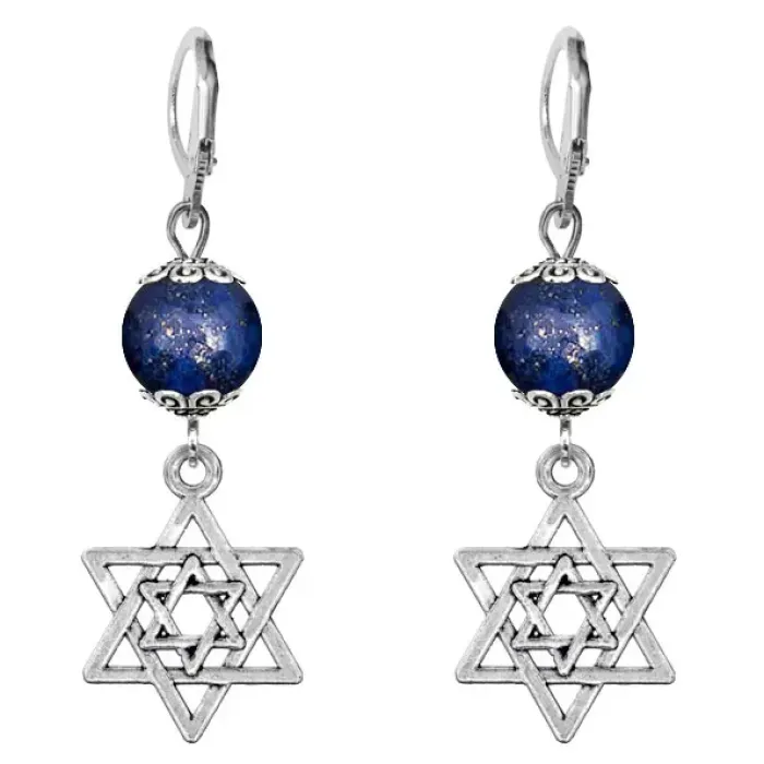 Серьги-амулеты Звезда Давида (от сглаза и зла), лазурит SE-MKA26-02