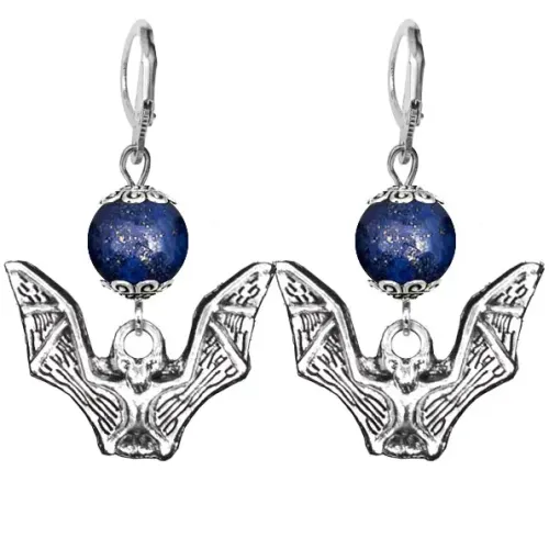 Серьги-амулеты Летучая мышь (защита, счастье, успех), лазурит SE-MKA26-12