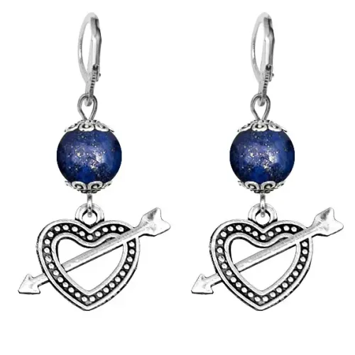 Серьги-амулеты Сердце со стрелой (любовь), лазурит SE-MKA26-22