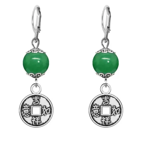 Серьги-амулеты Монетка (богатство), нефрит SE-MKA27-13