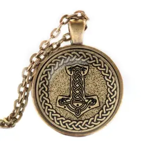 Кулон-амулет с изображением Молота Тора — символа силы и защиты, традиционно используемого в скандинавской культуре. Этот уникальный аксессуар выполнен из металла с покрытием под бронзу и оснащён выпуклой стеклянной линзой, что придаёт ему особый шарм. В комплект входит прочная цепочка с замком, обеспечивающая удобство ношения. Кулон упакован в прозрачный полипропиленовый пакетик без подвеса, что делает его идеальным вариантом для подарка или личного использования. Такой амулет станет не только стильным дополнением к образу, но и источником вдохновения.