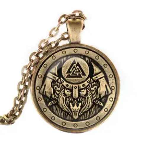 Кулон-амулет с изображением символа Один и Валькнут — это не только стильное украшение, но и предмет, который традиционно ценится за свою силу и защитные свойства. Изготовленный из качественных материалов, кулон обладает выпуклой стеклянной линзой, что придаёт ему уникальный вид. Покрытие под бронзу добавляет изделию благородства и элегантности.