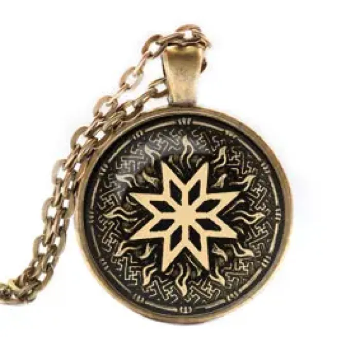 Кулон-амулет с символом Алатыря — это не только стильный аксессуар, но и объект культурного значения. Он традиционно используется как оберег, приносящий удачу и защищающий своего владельца. Изготовленный из качественного материала с выпуклой стеклянной линзой и покрытием под бронзу, этот кулон станет ярким акцентом в любом образе.