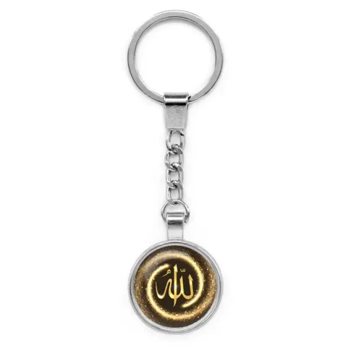 Этот односторонний брелок с изображением слова 'Аллах' станет стильным аксессуаром и символом веры. Выпуклая стеклянная линза придаёт ему особую привлекательность, а большое кольцо для ключей обеспечивает удобство в использовании.