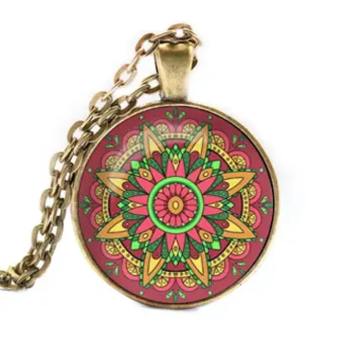 Кулон-амулет с изображением мандалы — это уникальный аксессуар, который несёт в себе глубокий символический смысл. Мандала представляет собой сакральное изображение, отражающее гармонию и порядок во Вселенной. Этот кулон станет не только стильным дополнением к образу, но и источником вдохновения и умиротворения.