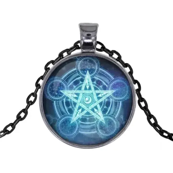 Кулон черного цвета с выпуклой стеклянной линзой, символизирующий магию и тайные знания. Этот стильный аксессуар станет отличным дополнением к любому образу и подчеркнет индивидуальность. В комплект входит цепочка с замком, что обеспечивает удобство ношения. Упаковка выполнена из прозрачного полипропиленового пакетика без подвеса, что делает его идеальным вариантом для подарка или личного использования. Традиционно пентакль ассоциируется с защитой и гармонией.