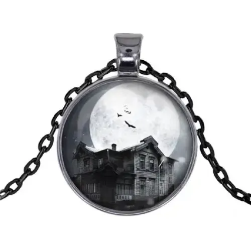 Черный кулон с цепочкой Дом с привидениями ALK439