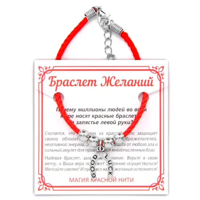 Браслет желаний Подкова — это не просто украшение, а символ счастья и удачи. Изготовленный на красном шнуре с подвеской-талисманом, он стал популярным атрибутом для привлечения положительной энергии. Красный цвет шнура традиционно ассоциируется с защитой и благополучием, что делает этот браслет отличным подарком для близких или себя.