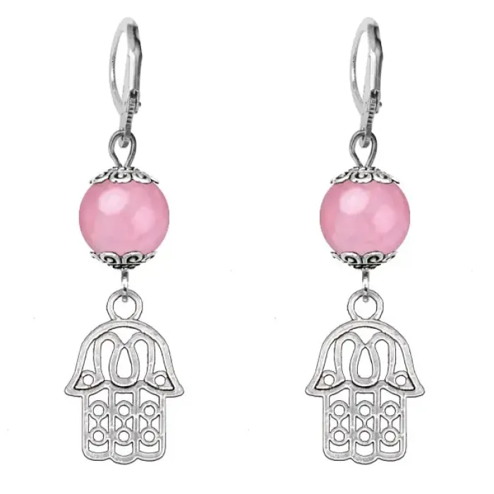 Серьги-амулеты Хамса (от сглаза и зла), розовый кварц SE-MKA28-01