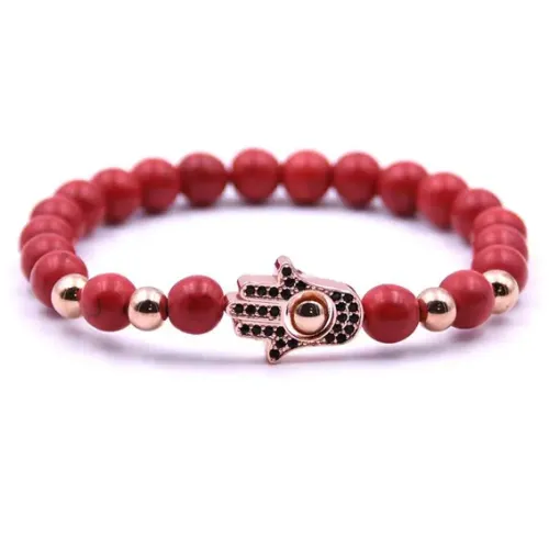 Браслет Хамса — это стильный аксессуар с культурным значением, символизирующий защиту и удачу. Изготовленный из синтетического коралла диаметром 8 мм и дополненный гематитовыми стразами, он станет ярким акцентом в любом образе.