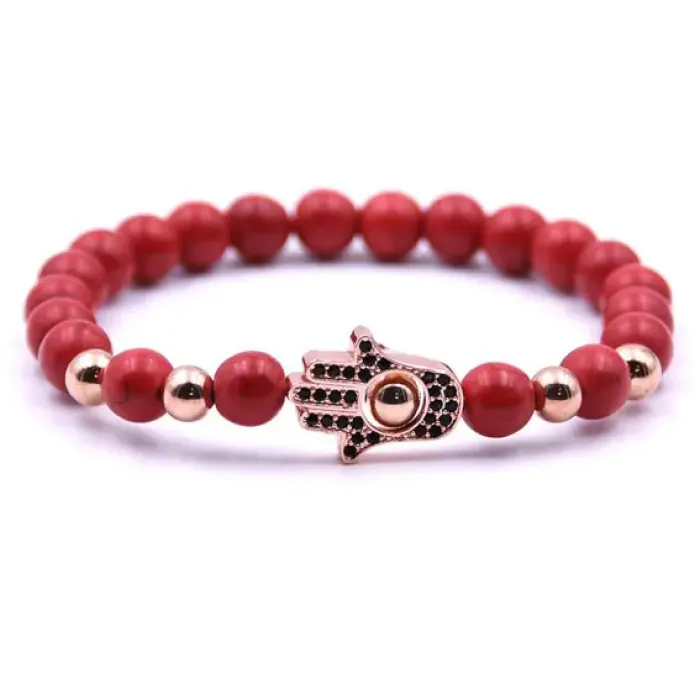 Браслет Хамса, коралл (синт.) 8мм, цвет медн. BJBS-155