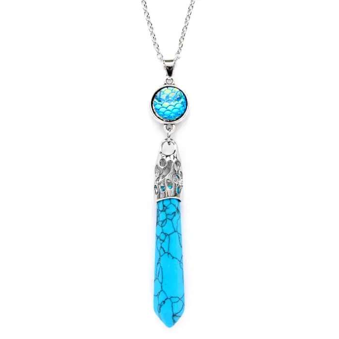 Кулон-маятник с цепочкой из синтетического камня, имитирующего бирюзу.