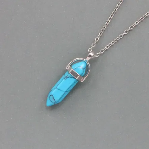 Сувенирный кулон-маятник с цепочкой, выполненный из синтетического камня, имитирующего бирюзу.