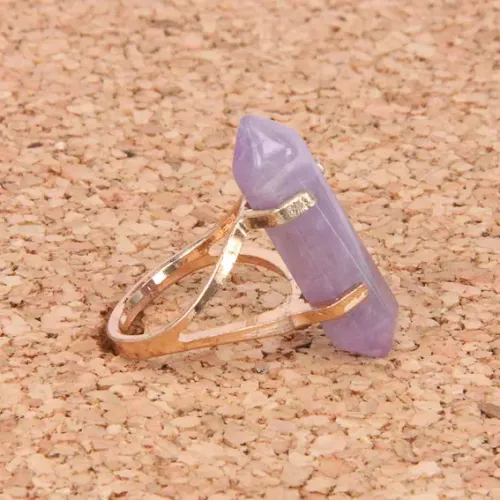 Кольцо с натуральным аметистом. Шестигранный камень в форме маятника свободно двигается в гнезде.