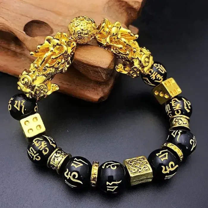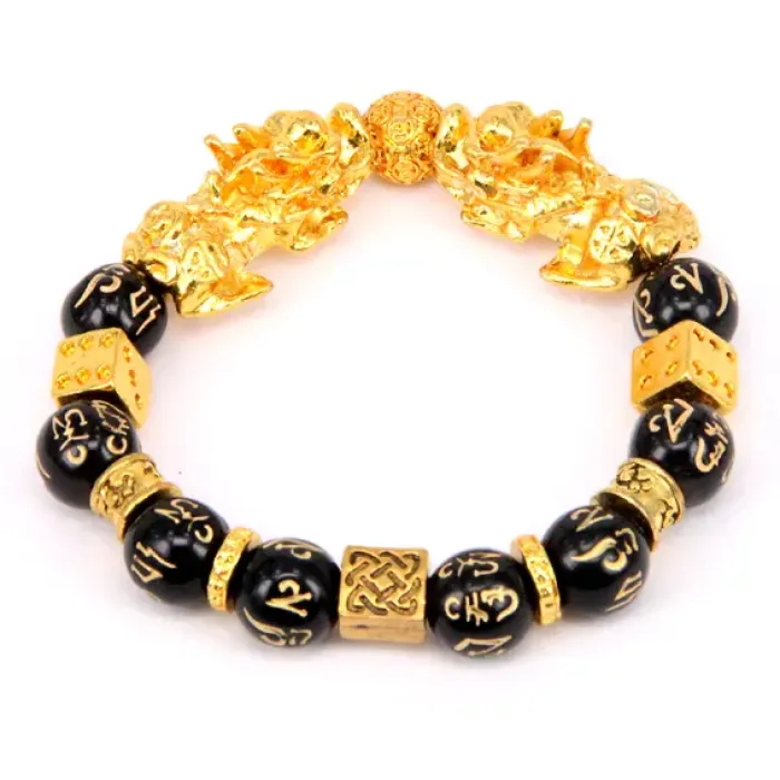 Браслет с двумя Пи Щу (богатство, защита) и мантрами 12мм BS212