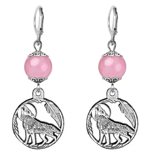 Серьги-амулеты Волк (защита, сила, победа), розовый кварц SE-MKA28-07