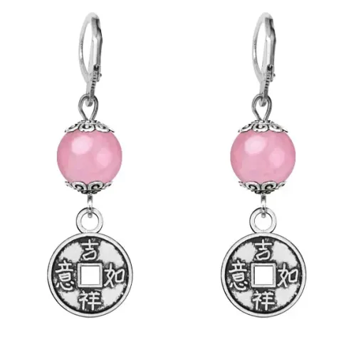Серьги-амулеты Монетка (богатство), розовый кварц SE-MKA28-13