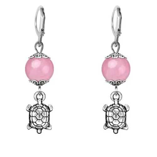 Серьги-амулеты Черепаха (здоровье и долголетие), розовый кварц SE-MKA28-16