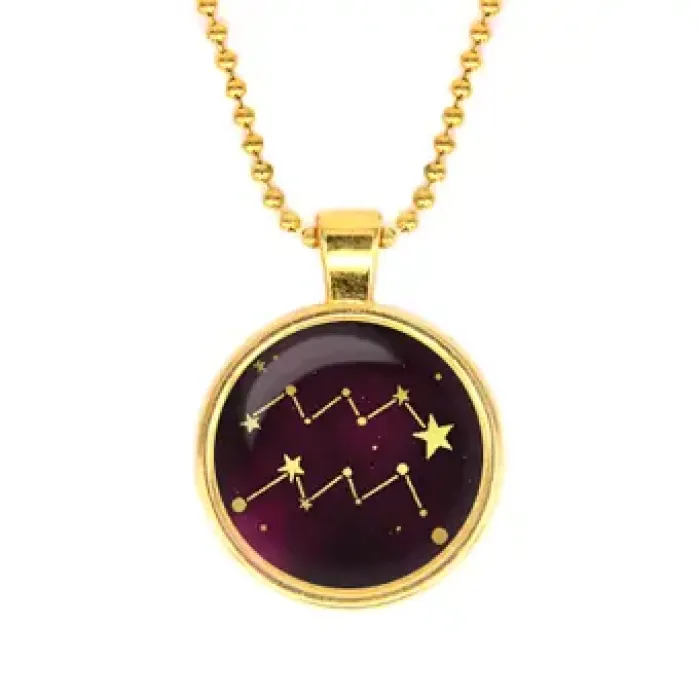 Кулон с изображением знака зодиака Водолей — это не только стильный аксессуар, но и символ индивидуальности и глубины. Изготовленный из бижутерного сплава с покрытием под золото, он привлекает внимание своим блеском и элегантным дизайном.