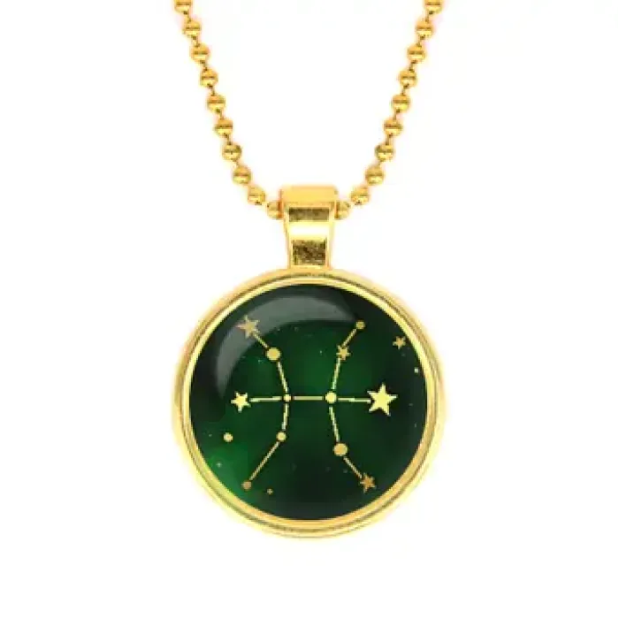 Кулон с изображением знака зодиака Рыбы — это стильный аксессуар, который не только подчеркивает индивидуальность, но и символизирует интуицию и чувствительность. Изготовленный из бижутерного сплава с покрытием под золото, он привлекает внимание своим элегантным дизайном. Выпуклая стеклянная линза добавляет глубину и блеск изделию.