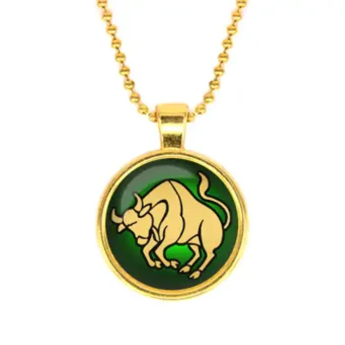 Кулон с цепочкой Знаки Зодиака - Телец является стильным аксессуаром, который не только подчеркивает индивидуальность, но и символизирует стойкость и надежность. Изготовленный из бижутерного сплава с покрытием под золото, кулон оснащен выпуклой стеклянной линзой, что придает ему особый шарм.