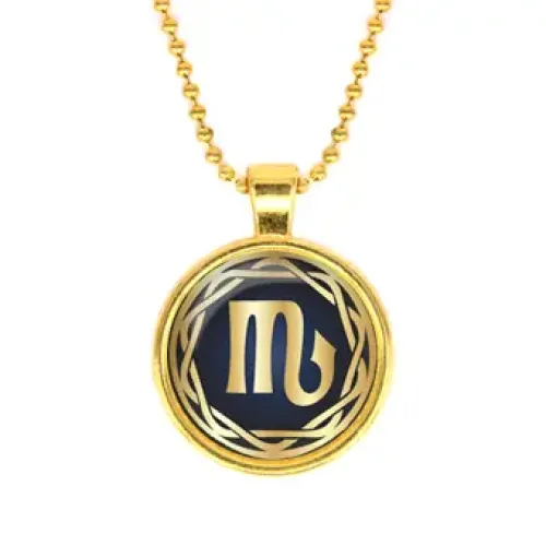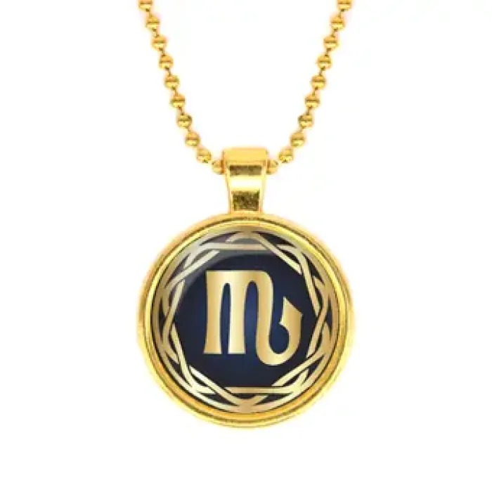 Кулон с изображением знака зодиака Скорпион — это стильный аксессуар, который подчеркивает индивидуальность и привносит в образ загадочность. Изготовленный из бижутерного сплава и покрытый золотом, он обладает элегантным блеском благодаря выпуклой стеклянной линзе.