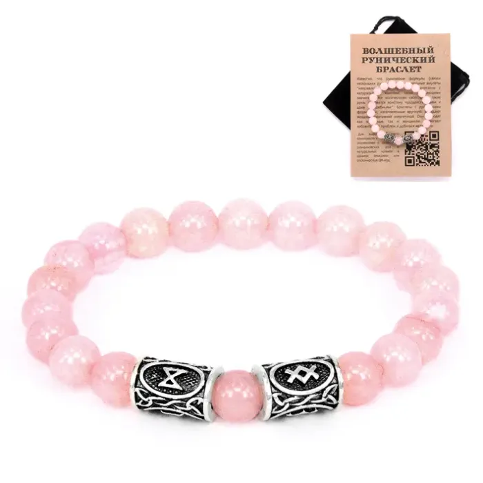 Рунический браслет Благополучие, здоровье, долголетие, Розовый кварц BSR041