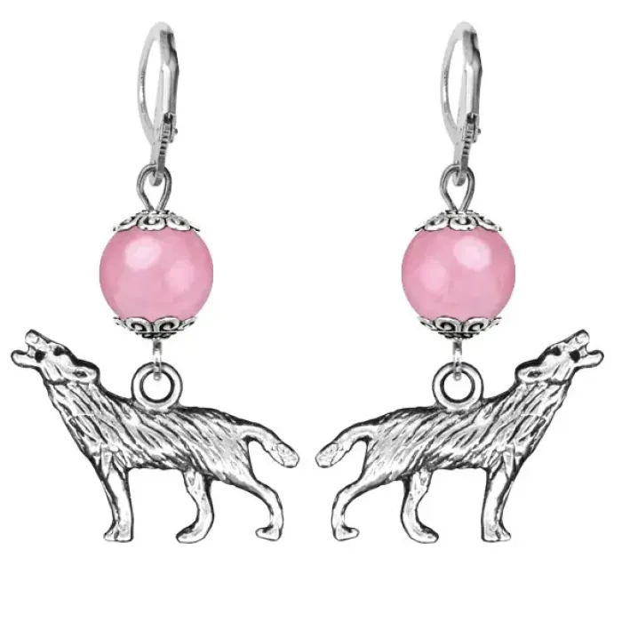 Серьги-амулеты Волк (защита, сила, победа), розовый кварц SE-MKA28-28