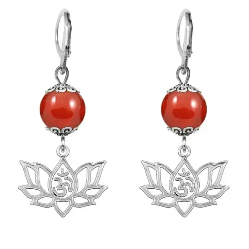 Серьги-амулеты Ом и лотос (защита, гармония, развитие), сердолик SE-MKA29-30